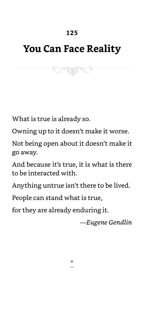 I guess that’s okay.  It had better be okay, if it’s true, because if it’s true, there’s nothing anyone can do about that, and they’re already living with it.  This is the Litany of Gendlin, as quoted by Eliezer Yudkowsky, of which I have a screenshot from his book Rationality:  From AI to Zombies, below.